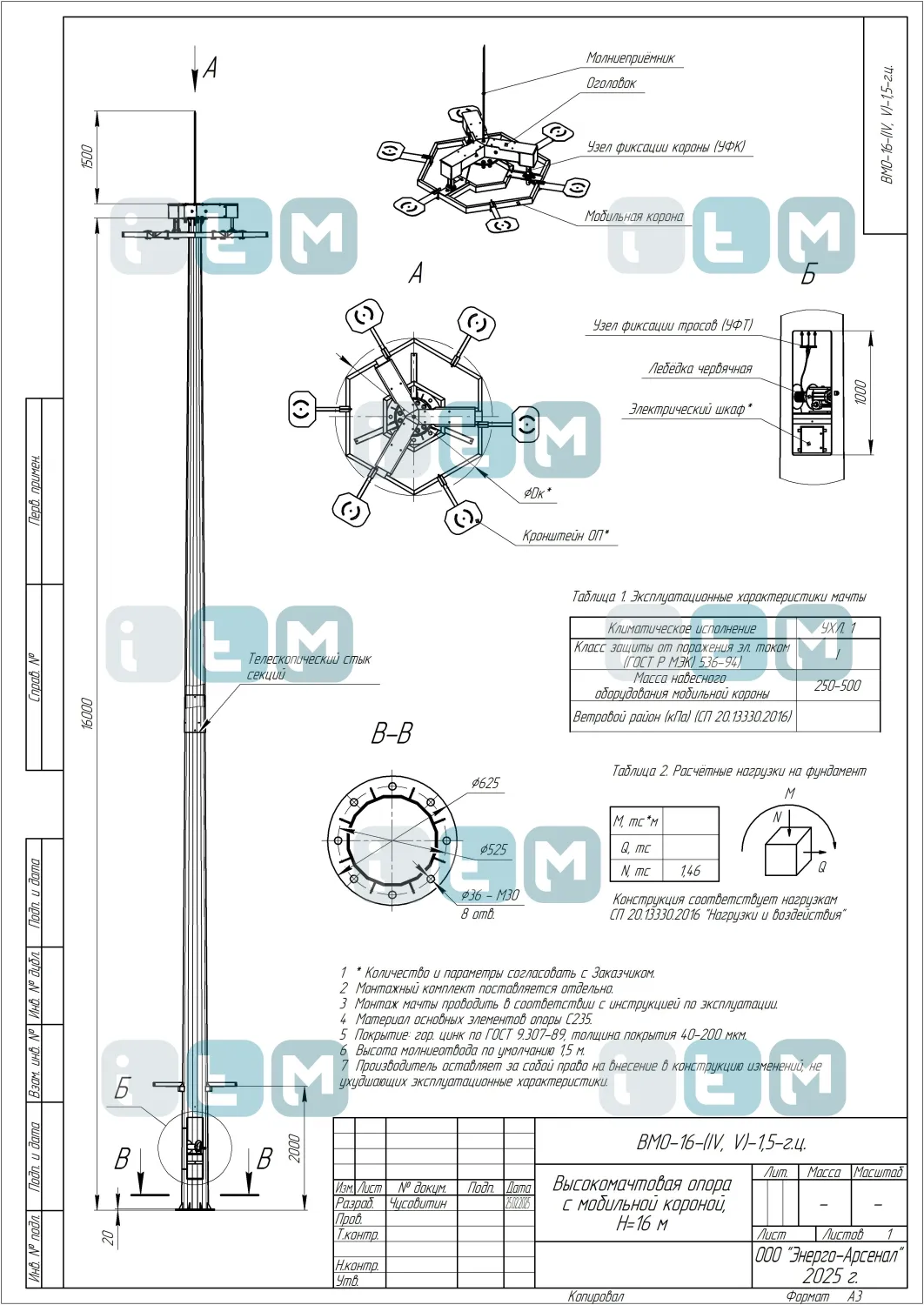 Купить мачту с мобильной короной ВМО-16-430/200 (МГФ-16-М)