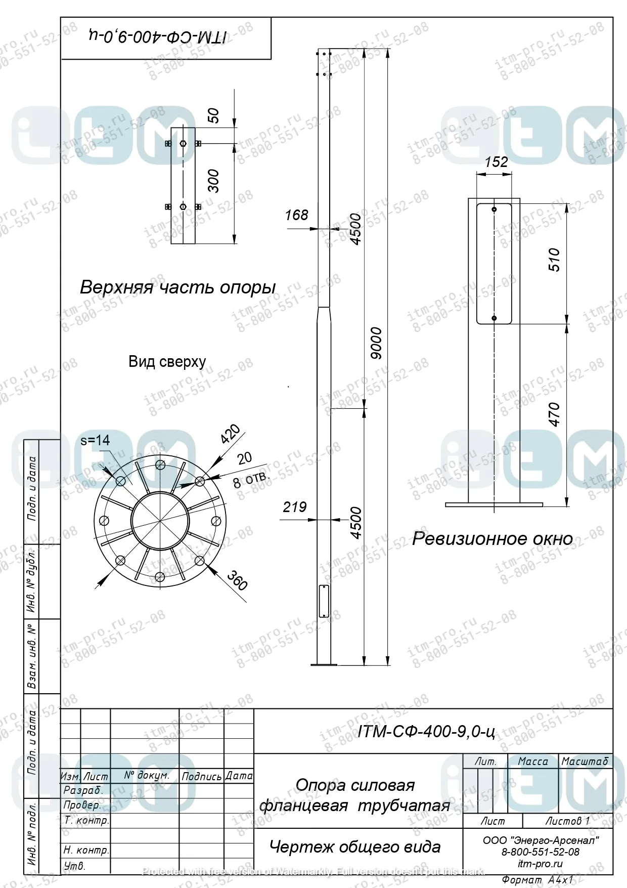 Опоры СФ-400-9,0 – это силовые фланцевые трубчатые опоры, которые способны выдерживать нагрузку до 400 кг, высота столба - 9 метров.