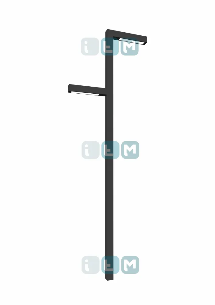 Г-образная парковая опора ЭСКАДА отличается удлиненной верхней частью, в которой расположены светильники.