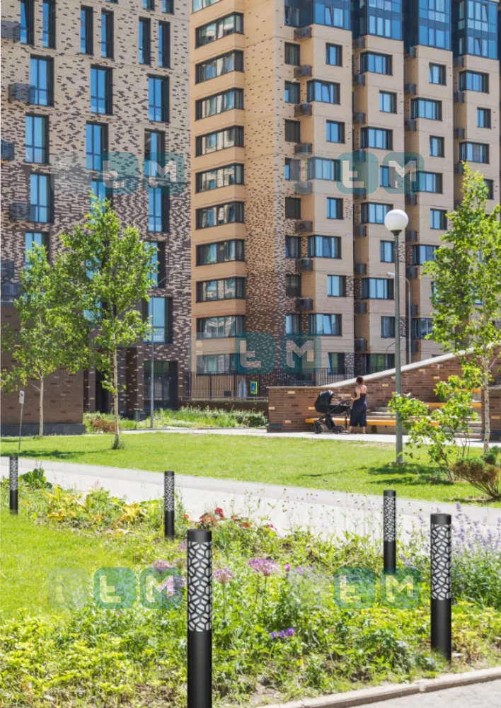 Парковый столбик МАТИЗ отличается ажурным узором из стали, который создает интересную игру света и тени.