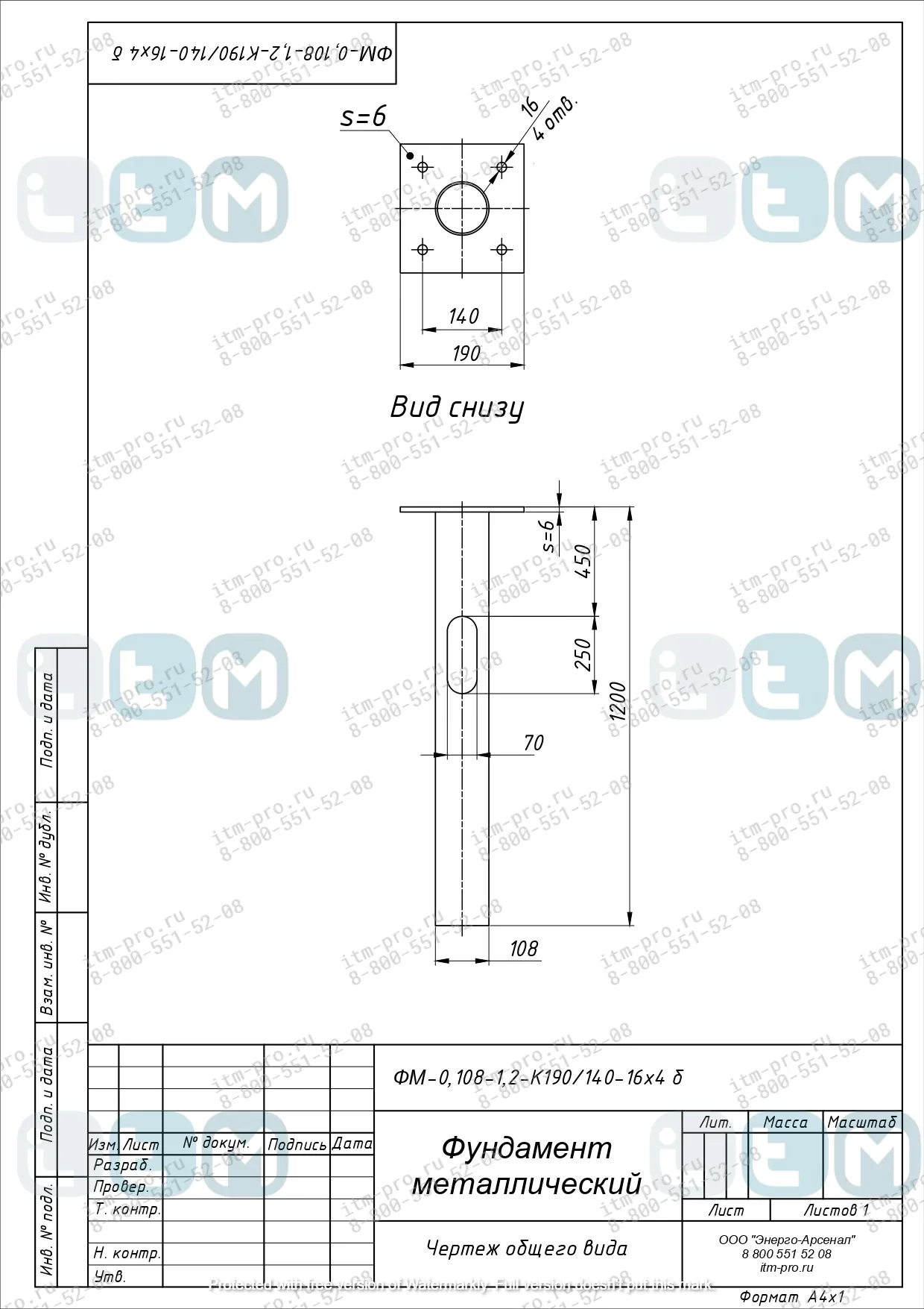 Характеристики закладных деталей фундамента ЗДФ-0,108-1,2-К190/140-16х4 б